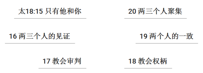 也有人会说, 你找两三个人来找我想干啥啊, 你们这点人就想定我的罪吗? 主耶稣针对这个说(19,20), 两三个人虽然少, 但却是满足见证罪状的必要条件了, 这两三个人来找你问话, 就形成了上帝面前的见证, 你轻看他们就是轻看主自己了. 所以不要觉得找俩人去和当事人谈谈只是走过场.
